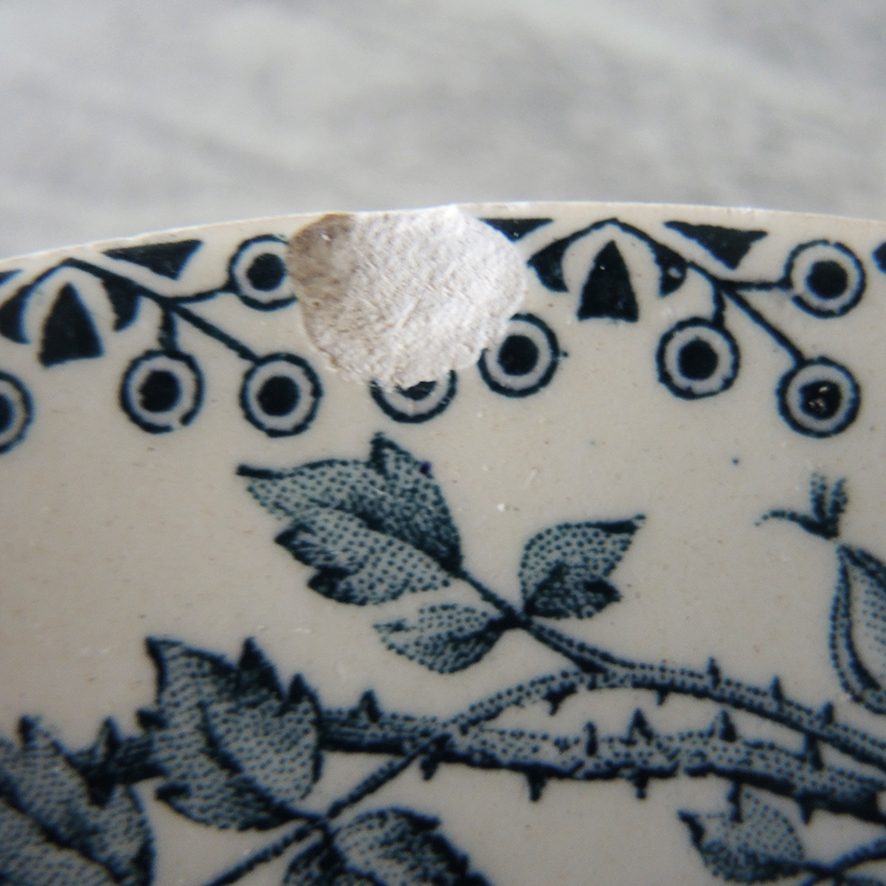 Une des assiettes comporte un éclat visible sur les photos