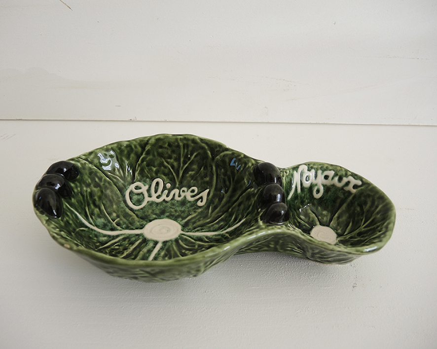 Ajoutez une touche de charme rétro à vos apéritifs avec ce serviteur à olives vintage en barbotine.