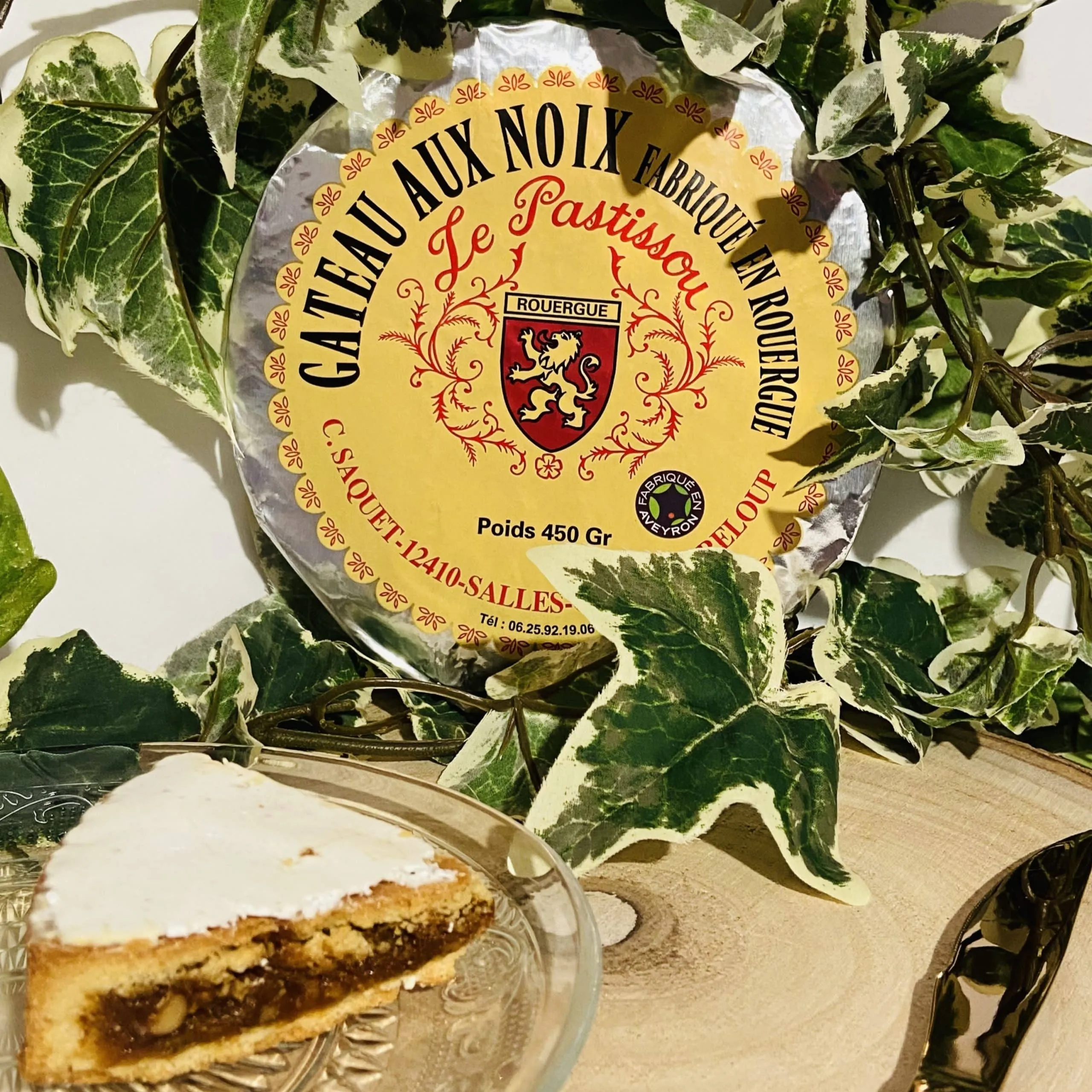 1 Gâteau aux noix : sucre, farine de blé type 55 (gluten), beurre (lait), noix 10,5%, lait entier en poudre (poudre de lait entier, lécithine de soja), oeufs. Poids : 450g.