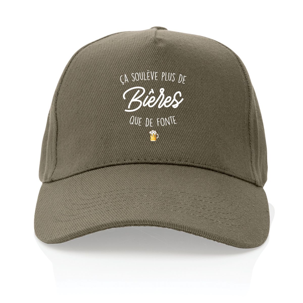 Renforcez votre humour avec notre casquette « Ça soulève plus de bières que de fonte » ! Parfaite pour les amateurs de bière qui préfèrent un lever de chope plutôt qu’une séance de muscu, cette casquette s’adresse à ceux qui aiment garder la forme… des bouteilles ! Idéale pour les apéros entre amis ou une soirée barbecue, elle deviendra vite votre accessoire préféré. Profitez d’un style décontracté et d’une bonne dose de rigolade à chaque fois que vous la porterez.