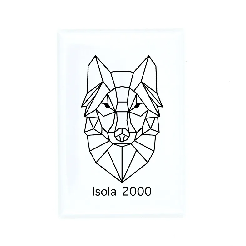 Magnet avec un loup en formes géométriques, vous avez la possibilité de choisir le nom de votre station de ski préféré.