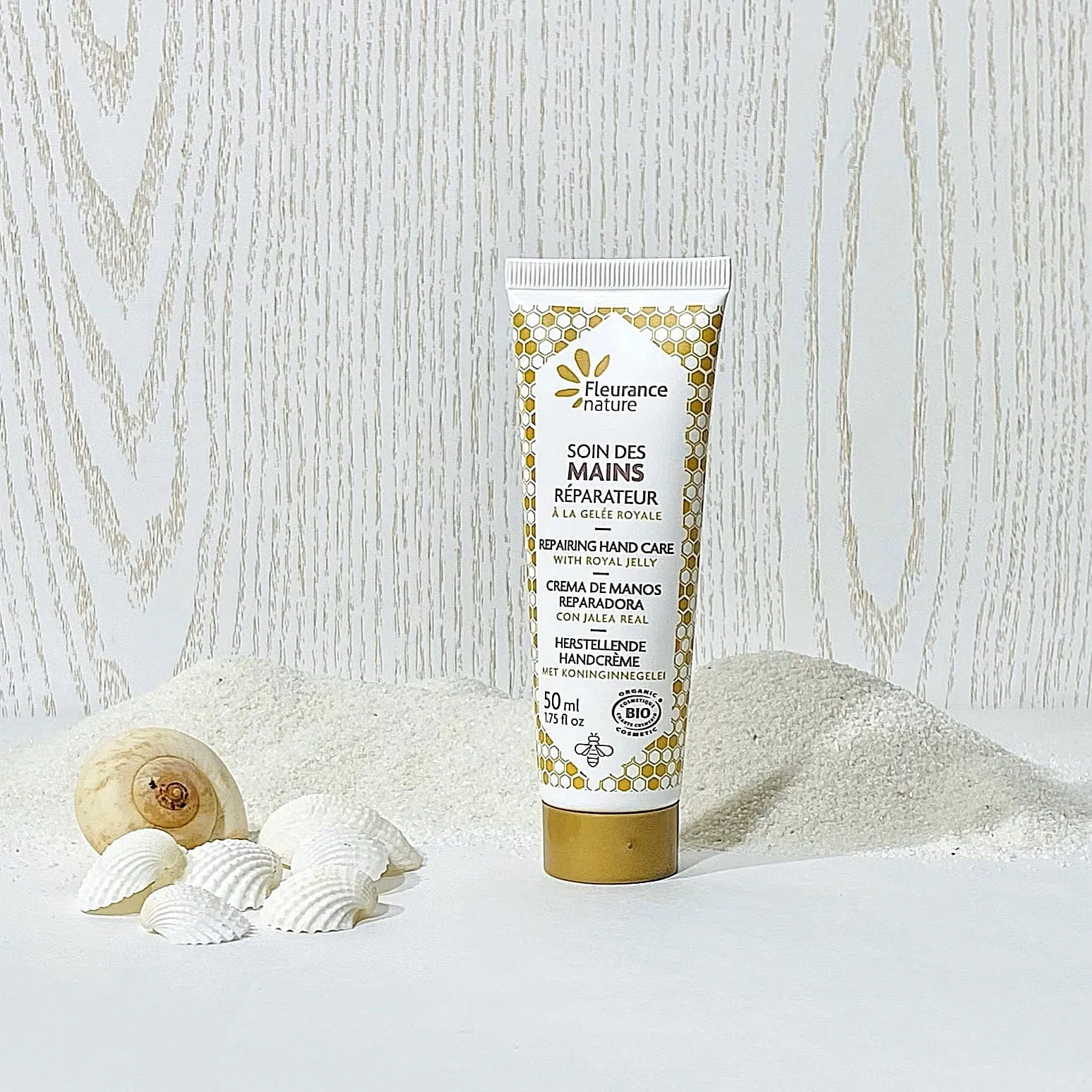 Huile vierge de jojoba*, hydrolat de néroli*, beurre de karité*, cire d’abeille blanche, huile vierge de noyaux d’abricot*, acides de fruits (myrtille, orange, citron), vitamine E naturelle. Tube de 50 ml.