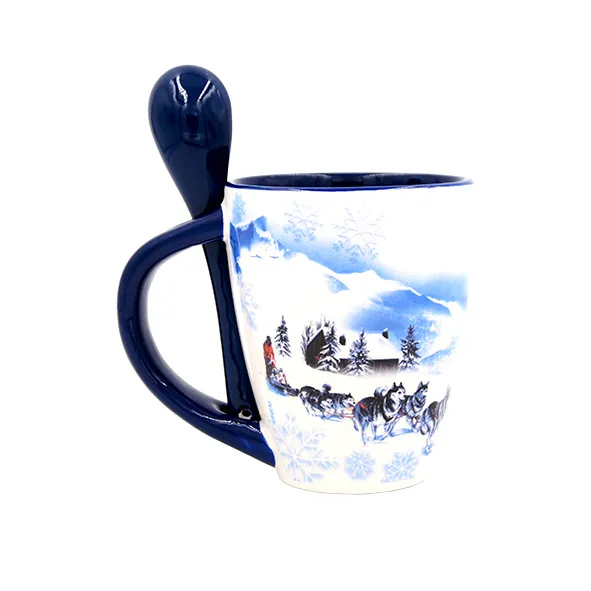 Mug bleu avec cuillère en relief husky.