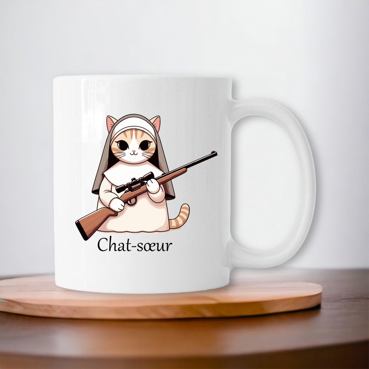Faites ronronner vos matinées avec le mug Chat-soeur! Un brin d’humour pour votre café, ce design exclusif marie malice et originalité. Souriez à chaque gorgée en compagnie d’un félin pas comme les autres, vêtu en habit monastique et armé d’humour. Parfait pour les amateurs de chats et d’insolite, ce mug apporte une touche de fantaisie à votre quotidien. Un must-have pour égayer vos pauses thé ou café!