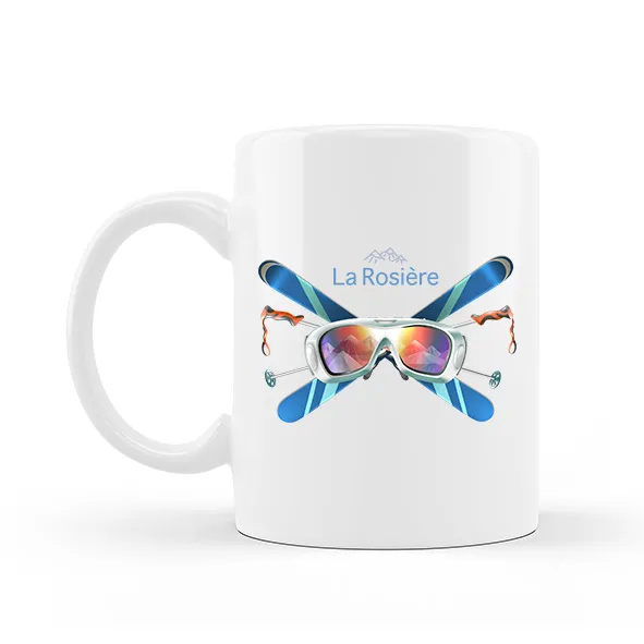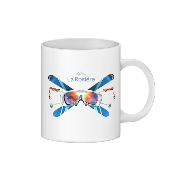 Mug logo ski freestyle. La tasse est décorée en France dans le département de la Savoie.