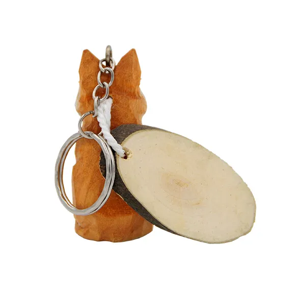 Porte-clés d’un renard en bois sculpté et peint.