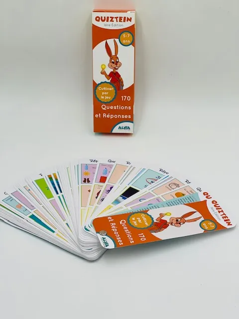 Quiztein est une série de 170 questions-réponses, sur différents sujets adaptées aux enfants de 5 à 7 ans. Nous explorons les sciences, le civisme, la culture, l’environnement, l’histoire ou la géographie, en visant, en un mot, à renforcer leur culture générale.