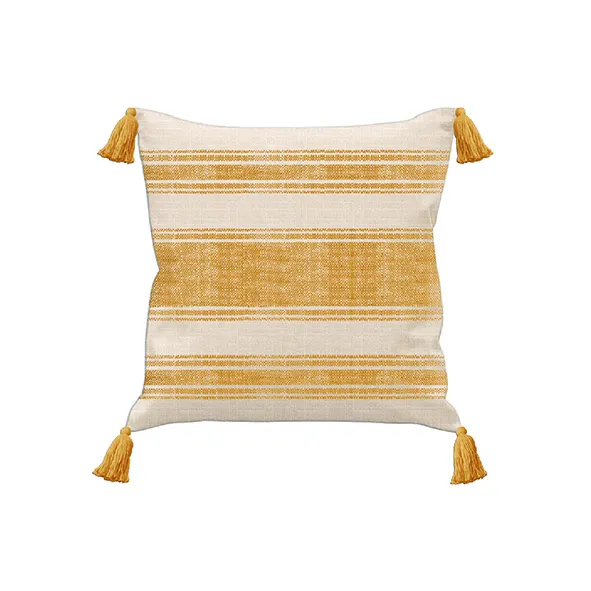 Coussin 50x50cm lin/coton rayé naturel-ocre