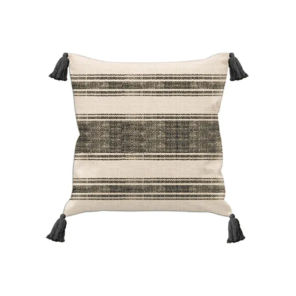Coussin 50x50cm lin/coton rayé naturel-granit