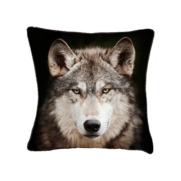 Coussin suédine loup fond noir