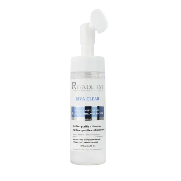 RIVADERM RIVA CLEAR MOUSSE NETTOYANTE ECLAIRCISSANTE 200ML + BROSSE