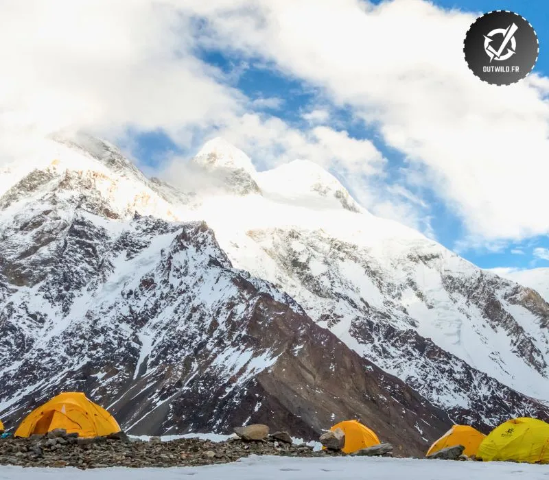 • Camp d’Altitude : L’ascension du K2 nécessite la mise en place de plusieurs camps d’altitude pour permettre l’acclimatation progressive des alpinistes à la faible teneur en oxygène à de telles altitudes. Ces camps sont situés à différentes hauteurs, allant du camp de base à 4 900 mètres jusqu’au camp 4 à 7 950 mètres.